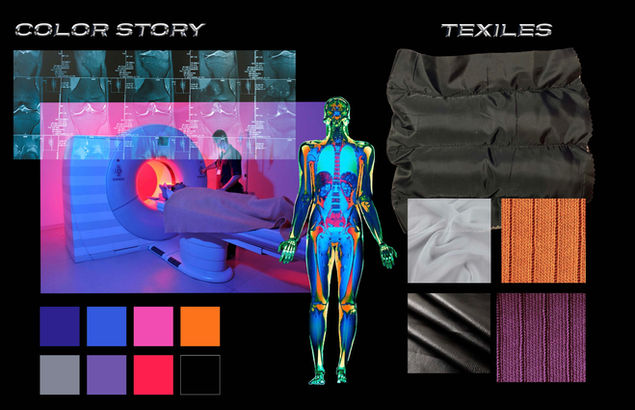 During covid when schooling and life was majority lived through technology i noticed the impacts sitting at a computer on my body. Constantly hunched over a screen, lower back pain eyes dried up and bloodshot. While researching what i can do to help myself improve my posture and support my eyesight I came across the article speaking on how humans could evolve to adjust to this new way of life for better or for worse. I wanted to design a collection based off our future bodies, and a way to support/ rectify these changes. Researching solutions we have today like posture correctors and braces, these being a main inspiration for this collection. Incorporating these supports and correcters into clothing in an interesting way was the main goal